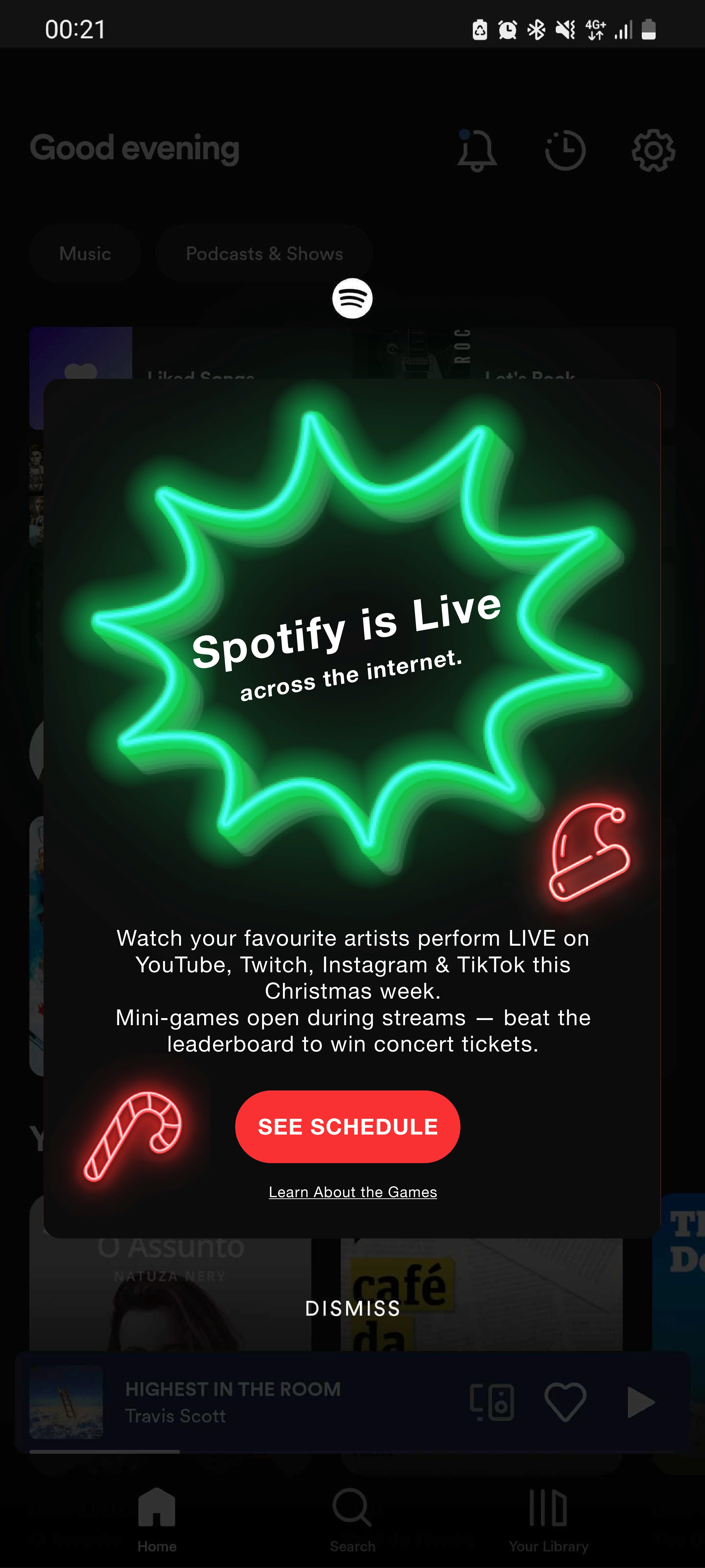 For one week, Spotify goes LIVE across every major digital channel (YouTube, Twitch, Instagram, TikTok and more) where artists perform, interact and host real-time sessions. During each livestream, a mini-game goes live on Spotify that lets users compete for concert tickets.